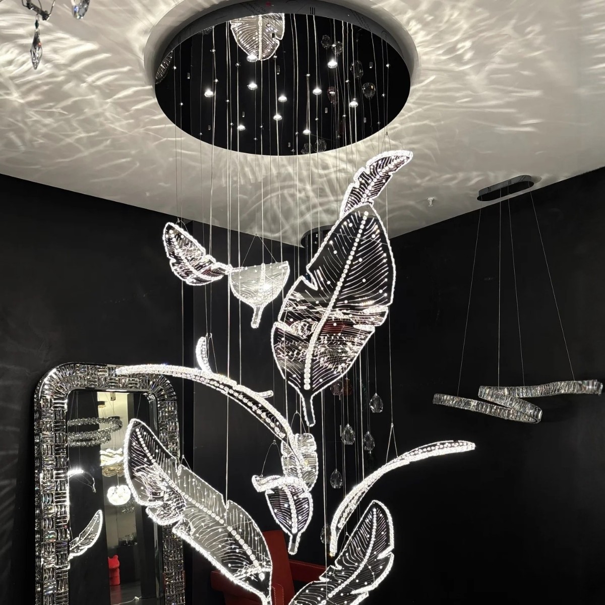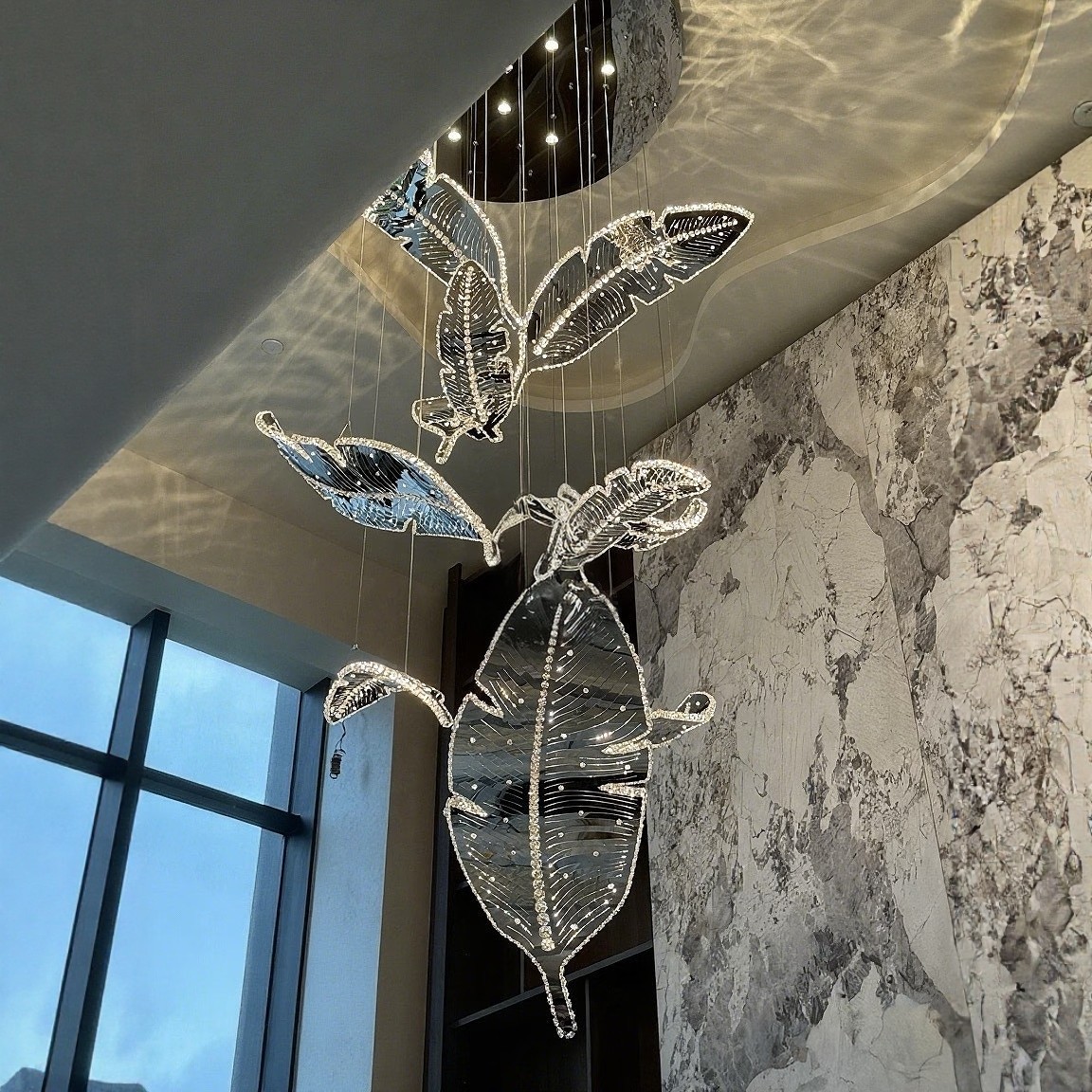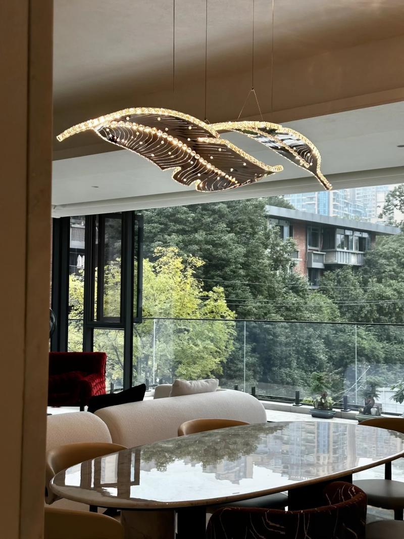 Đèn thả thông tầng Pha lê kiểu chiếc lá là sản phẩm độc đáo, hiện đại, sang trọng luôn đáp ứng được nhu cầu về mặt ánh sáng cũng như thẩm mỹ. Không gian buổi tối nhà bạn sẽ trở nên lãng mạn, huyền ảo, tràn ngập ánh sáng. Với phong cách hiện đại lịch lãm kết hợp với màu sắc Châu Âu sang trọng chắc chắn chiếc đèn này là lựa chọn hoàn hảo cho gia đình bạn.